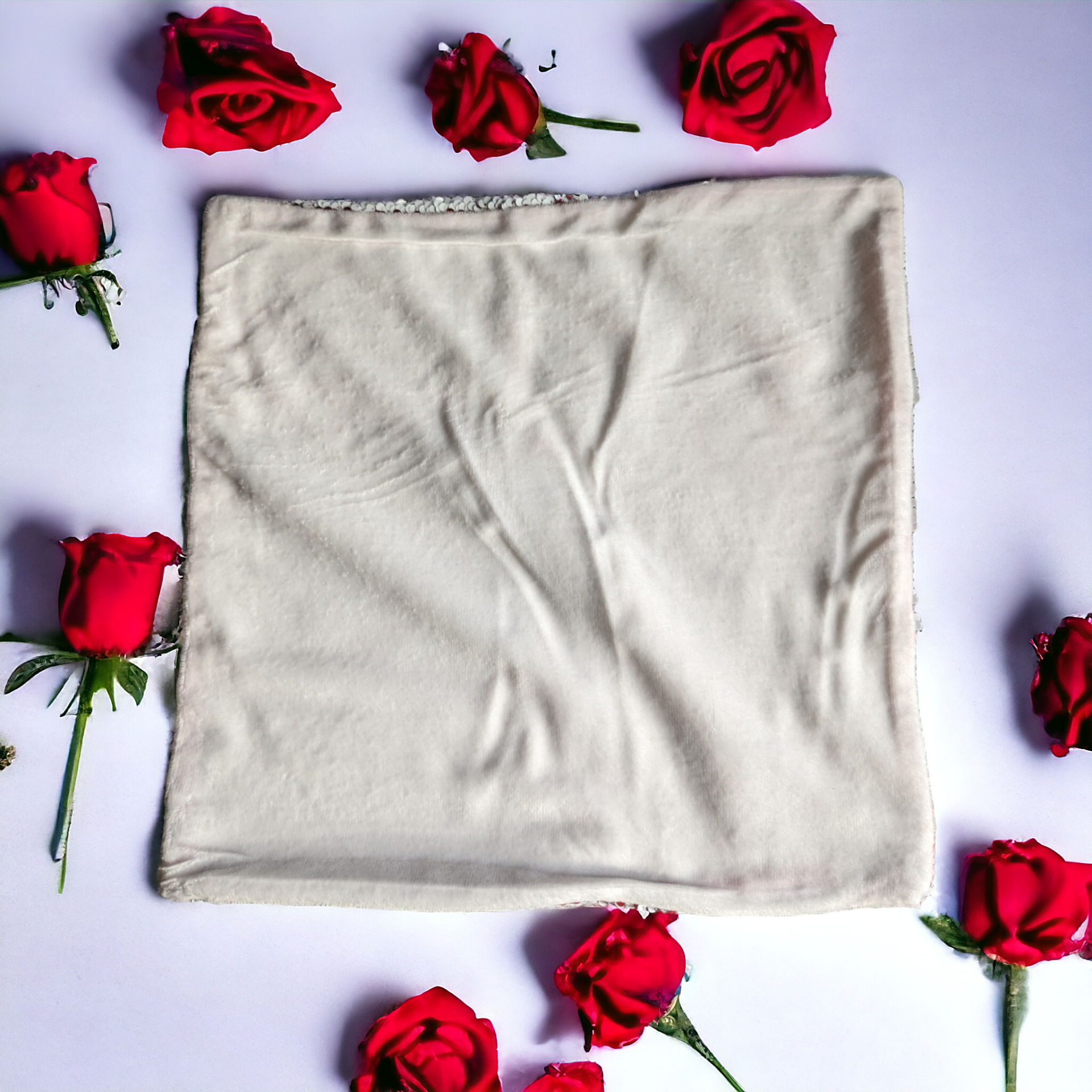 Rear of cushion is made from a wonderful white velvet-like fabric