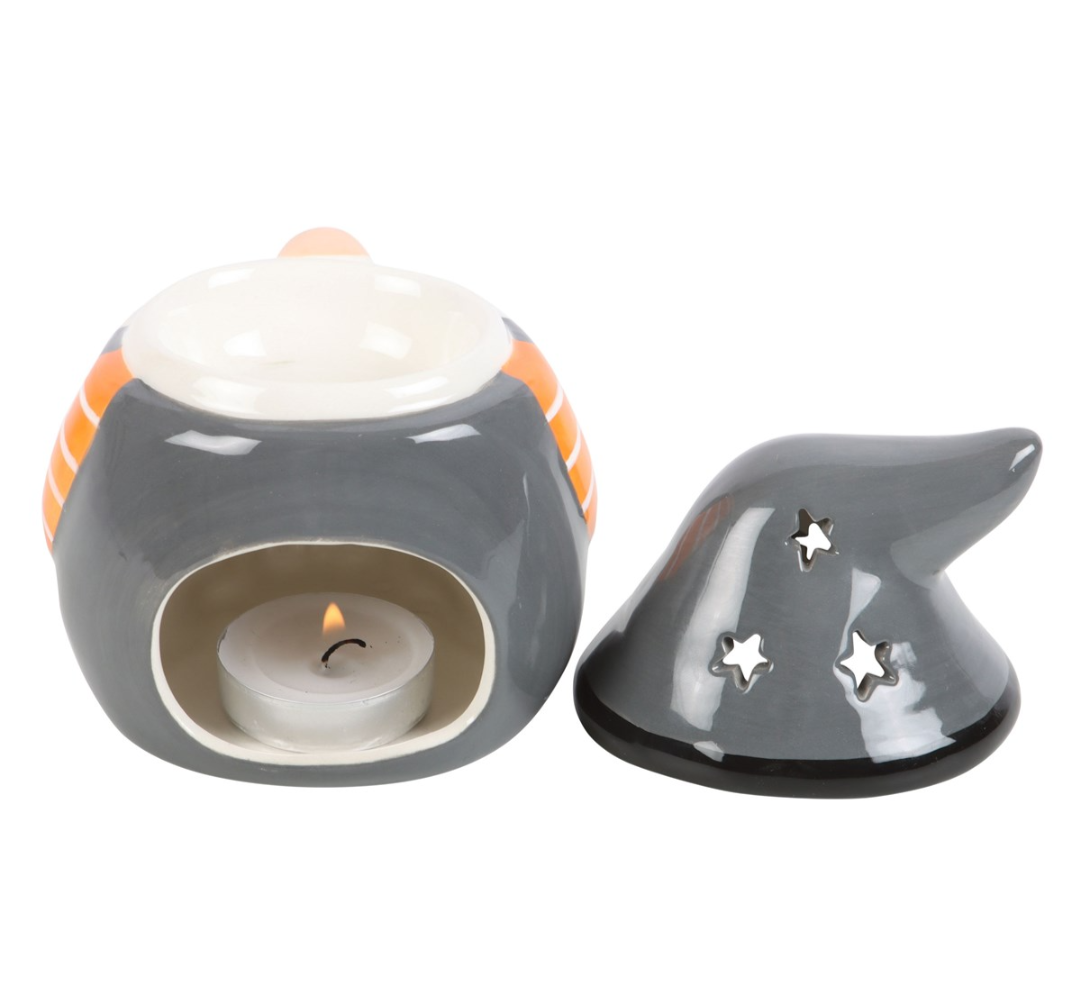 This delightful Halloween gonk oil burner will make a unique addition to seasonal decor, capturing the spirit of the occasion with its grey and orange tones and pumpkin detail. With a cut-out star design in his hat, this oil burner casts a magical glow perfect for creating a cosy and mystical atmosphere. Do not use more than one tealight and remove lid when in use.