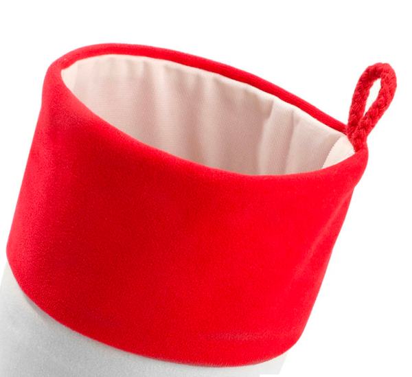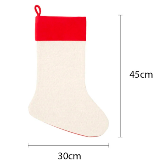Sublimation blank linen red stocking with a soft top opening. This product is a high quality linen with a natural linen front for sublimation printing. Great for personalising with any image or text to gift to your friends and family.