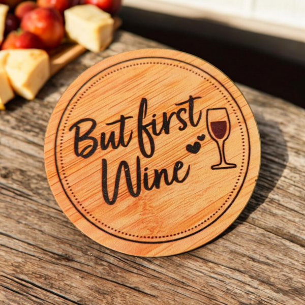 Made from bamboo these wine covers/charcuterie boards come with funny quotes